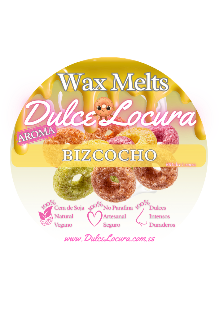 El olor a horno encendido y a mimo casero hecho fragancia. Locura de Bizcocho huele a bizcocho recién horneado: esponjoso, dulce y con ese toque de vainilla que abraza el alma. Un wax melt reconfortante que convierte tu hogar en una pastelería llena de amor.